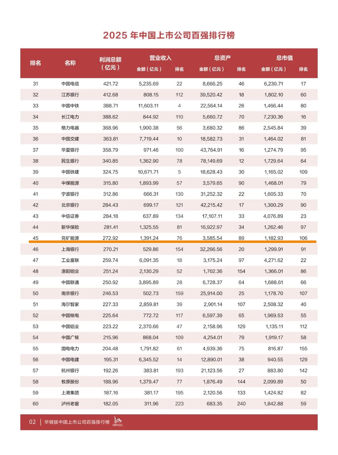 No. 45 on China Top 100 Listed Companies Ranking by China Top 100 Listed Companies Forum